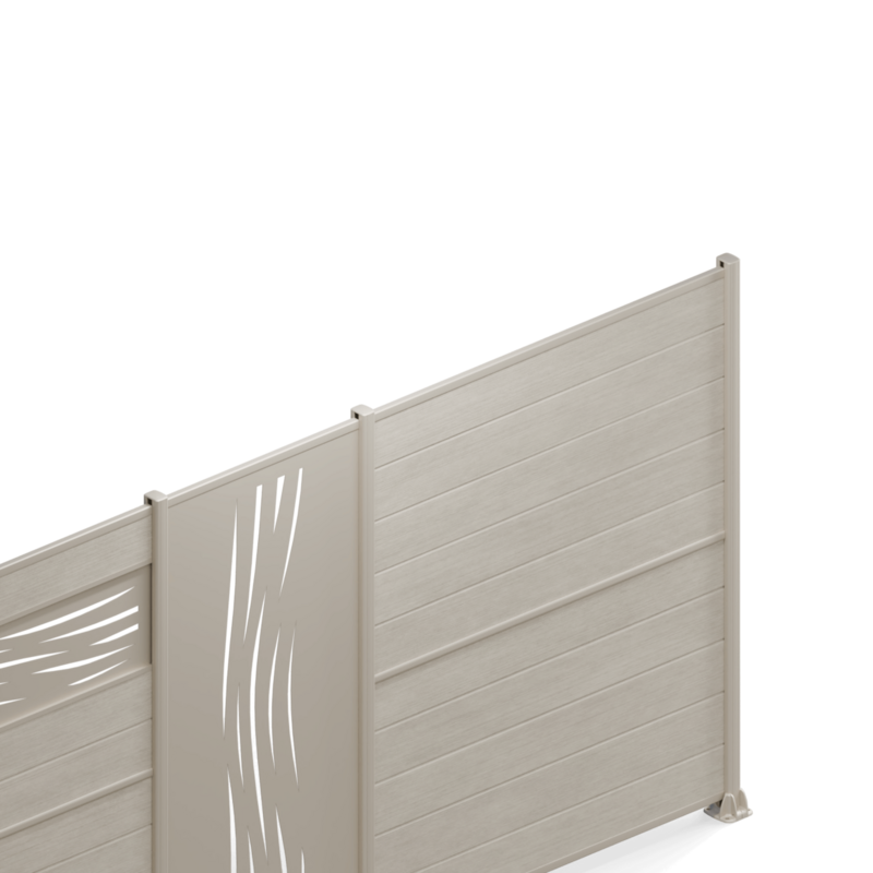 Apportez une touche d'originalité à votre clôture avec le décor vertical YHUS, fabriqué en Europe et disponible en 3 finitions — Design, Pinceaux et Dune — déclinées chacune en 5 coloris. Facile à intégrer entre deux poteaux en aluminium, il personnalise votre espace extérieur avec style et singularité.